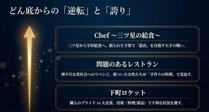 (選定理由:妥協を許さない天才シェフと組織の再生が好きな人向け)