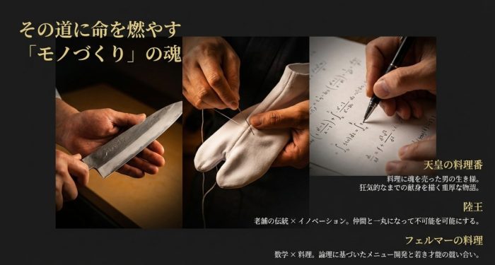 料理に対する狂気的なまでの献身と、一皿にかける情熱の重みが共通しています。