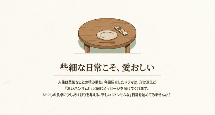 今回紹介したドラマたちも、形は違えど同じメッセージを届けてくれるものばかりです。豪華なディナーもいいけれど、いつもの食卓に少しだけ彩りを与えてくれるような、そんな素敵なドラマ体験があなたを待っています。
