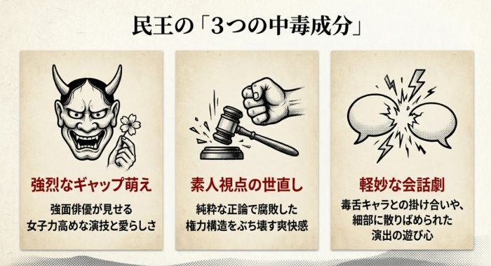 多くの視聴者が民王に惹きつけられた理由は、単なるコメディの枠に収まらない多層的な面白さにあります。